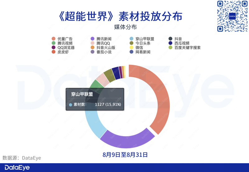 投放平台方面,但《超能世界》在该阶段逐渐重视起字节系渠道的投放,穿山甲联盟的投放占比已经来到第三的位置。