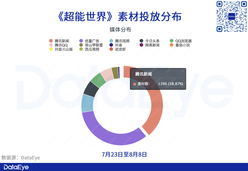 投放平台方面,腾讯系渠道依旧是该阶段投放频率、次数最多平台,不同的是,腾讯新闻投放占比上升至38.53%。