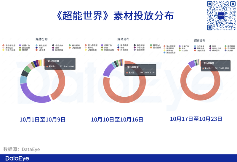 而在投放平台方面,**周,穿山甲联盟投放占比为42.83%;第二周,穿山甲联盟投放占比飙升至78.9%;第三周,穿山甲联盟投放占比直接来到89.68%。