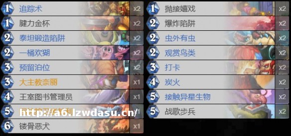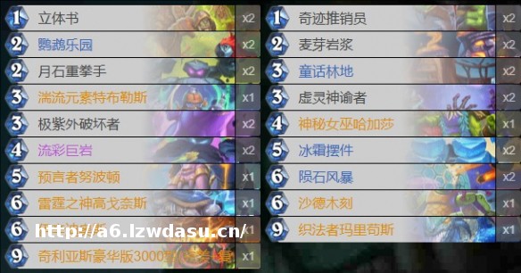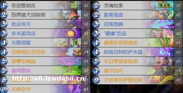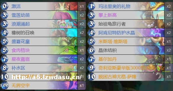 2、这套前期解场铺场,中期下游客林恩或者食肉格块林恩爆牌,术士有基尔加丹萨格拉斯和乐章不怕爆。