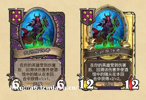 · 改动前:战吼,亡语:使酒馆中的元素在本*对战中获得+2/+2。