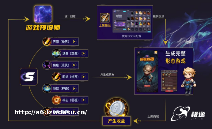 一站式AI游戏创作平台SOON的核心能力,实现了全链路的游戏智能开发。基于该平台,开发者能够一键生成涵盖角色、**、地图、UI等全系列美术资源,这标志着游戏开发从依赖人工的传统模式,