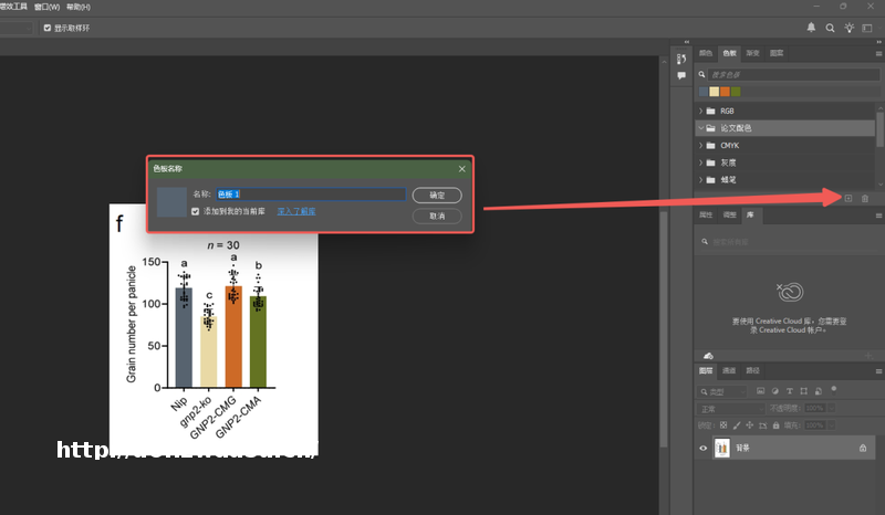 7.每次吸取后,在板面板底部点击 “+” 号,将颜添加到当前组。