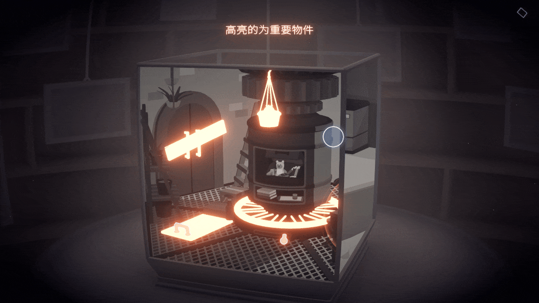 玩过《画中世界》的朋友应该很*悉这种感受。不同的是,《画中世界》除了拼接、放大缩小、跨场景动态谜题,还多一个「嵌套」的层次。《笼中窥梦》3D 立方体旋转的形态本身决定了它无法像 2D 画板形态的《画中世界》那样实现嵌套,解谜的**地少一层可递进的空间。