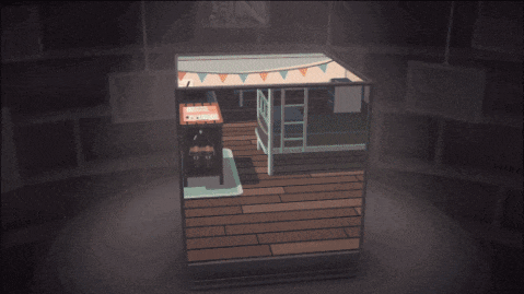 游戏中,你置身于一个神秘的空间,面前是一个被放置在台面的立方体。除底面之外,立方体的五个面都展示着各不相同的插画风格场景。你可以旋转立方体 —— 更准确地说,立方体是静止的,只是你改变了自己观察的角度。