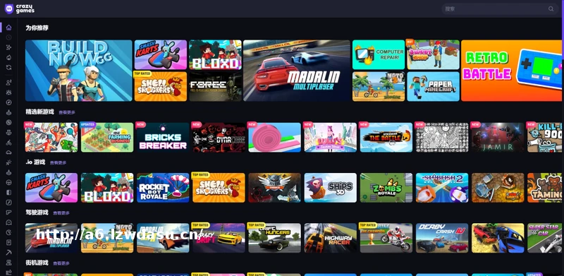 网站是英文的,可以用翻译插件,看看这首页,推荐了**多的游戏资源,把鼠标放在游戏封面里,图片就会转化为动画,可以预览游戏的内容