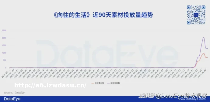 小游戏《向往的生活》在7-10月期间一直保持着较低的素材投放量,但日均投放素材量不超过10条。