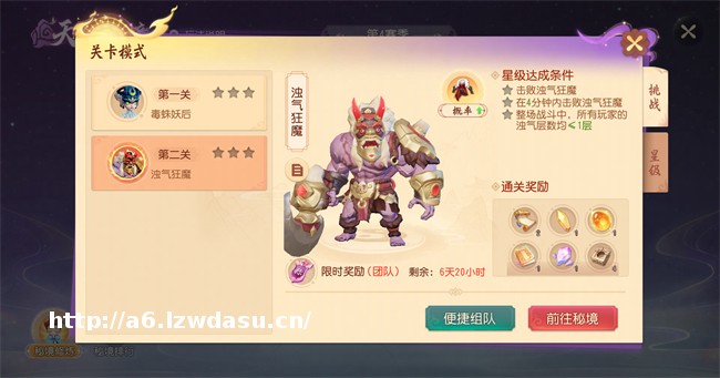 天机秘境第2层首领【浊气狂魔】现已登场。首周登场的【浊气狂魔】将获得强化,其**气血与造成伤害结果将提高30%。首周成功挑战【浊气狂魔】的玩家将获得额外的称号与成就。