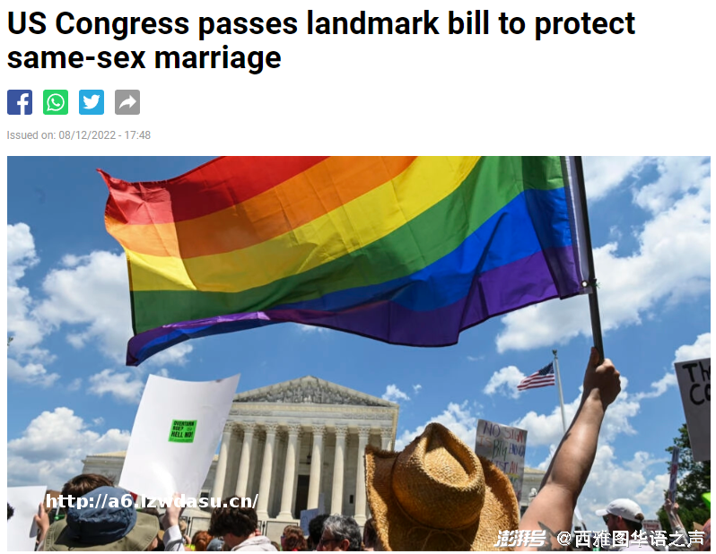 1、众院高票通过《尊重婚姻法案》,各州将承认同*和跨种族婚姻