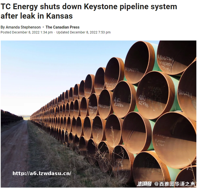 Keystone石油管道线是将加拿大原油运送到美国中西部和墨西哥湾沿岸炼油厂的重要动脉,每日输送能力为62.2万桶。目前尚不清楚大规模漏油原因及该管道何时重新输油。