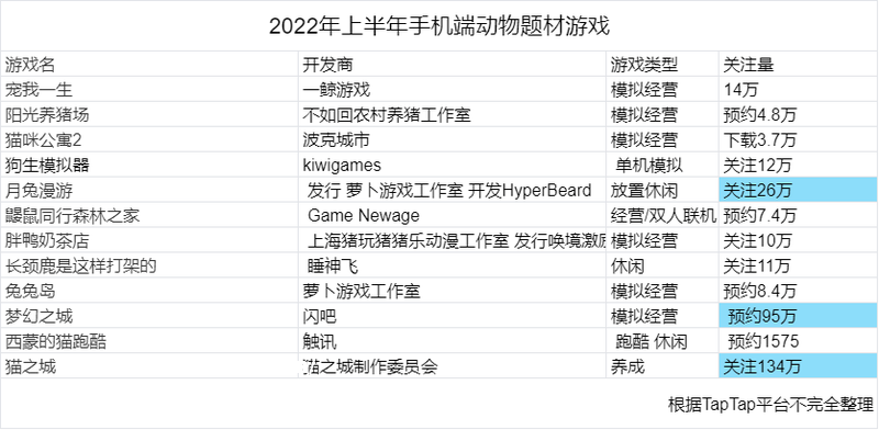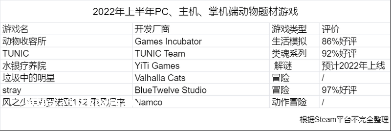 这里茶馆也盘点一下2022年上半年动物题材的相关游戏,包括手机端加PC端,来一起看看动物题材游戏的战绩如何?