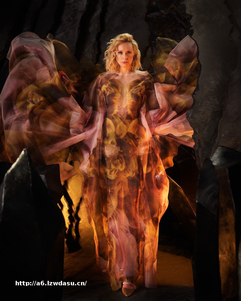 参加《权力的游戏》第八季首映礼时穿着的“冰火裙”。