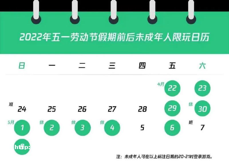 腾讯游戏发布公告,2022年五一假期期间,未成年人可于2月28日-3月6日每天20时-21时登录游戏。因调休而上班的4月28日(周日)和5月9日(周六)不能玩游戏。(新浪财经)