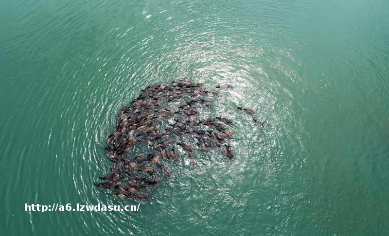 随着栅栏门的开启,上百头牛儿浩浩**冲向嘉陵江,奋力向水草丰茂的江心太阳岛游去。在江中,牛儿们还不时变换队形,跳起了“水上芭蕾”,经过数分钟破浪前行,登上了太阳岛欢快地啃食青草。