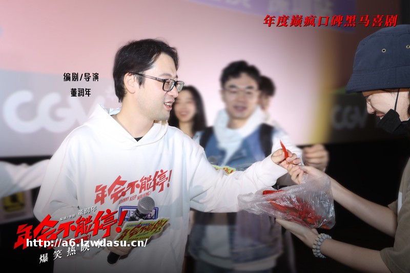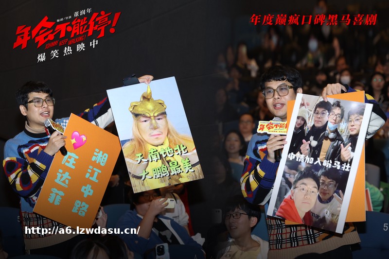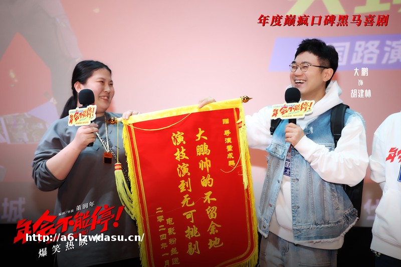 跟随票房增长的脚步,大鹏、庄达菲相继立下破亿整活福利的flag,大鹏表示等票房破5亿时,他将重现片中金角大王的造型参加路演,庄达菲则放言要整点更的福利,等票房破8亿时,她会在**塔蹦*。饰演青年胡建林的王皓被观众点评“从**眼看到王皓那一刻起,我就知道他总有一天会演年轻版的大鹏”,王皓笑称:“我从学表演那天看到《丝男士》开始,我就知道总有一天我会靠外部条件吃上这口饭。”大鹏则幽默接梗:“对于王皓来讲,他的未来不是梦,是‘壮’。”让现场陷入一派欢乐气氛之中。电影《年会不能停!》正在爆笑热映中,口碑黑马巅疯喜剧,不容错过。