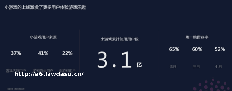 一、小游戏成绩单:上线20天累计3.1亿用户、65%的次留
