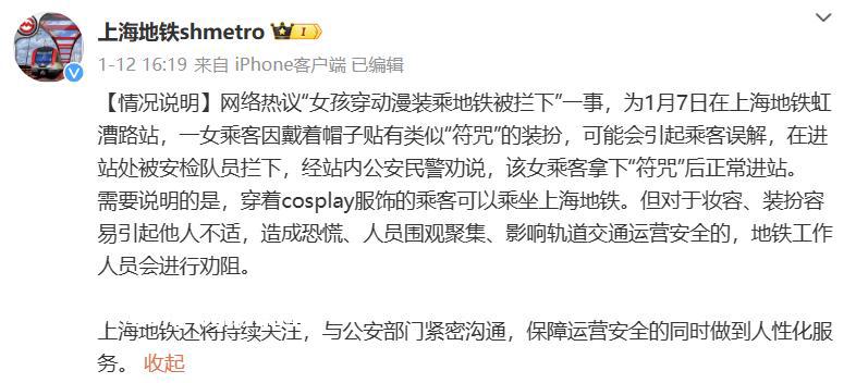 近日,上海一女孩穿动漫装乘地铁被拦下“教育”的事情,