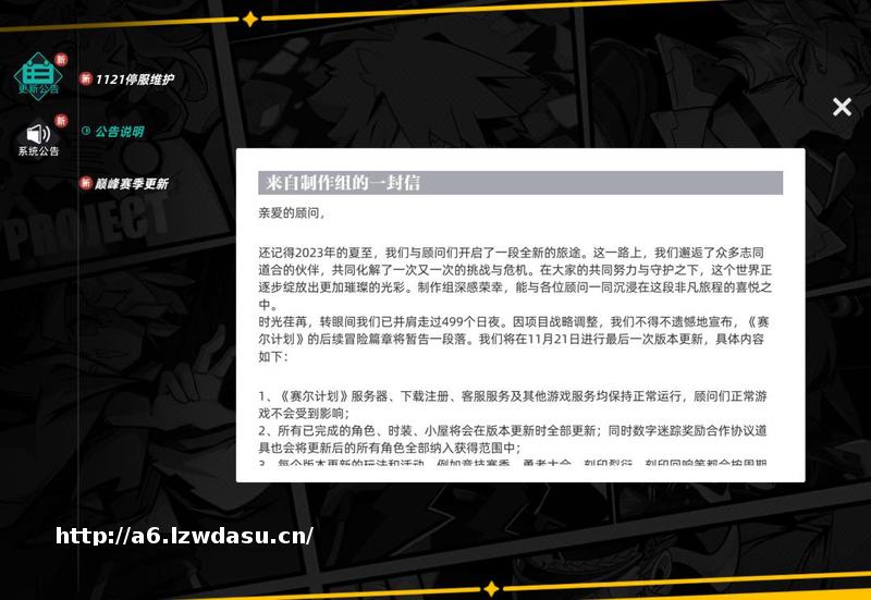 前两天,大概意思是这游戏眼看着就再起不能了,于是他们决定,虽然不会直接关服**,但以后就不再更新版本了。