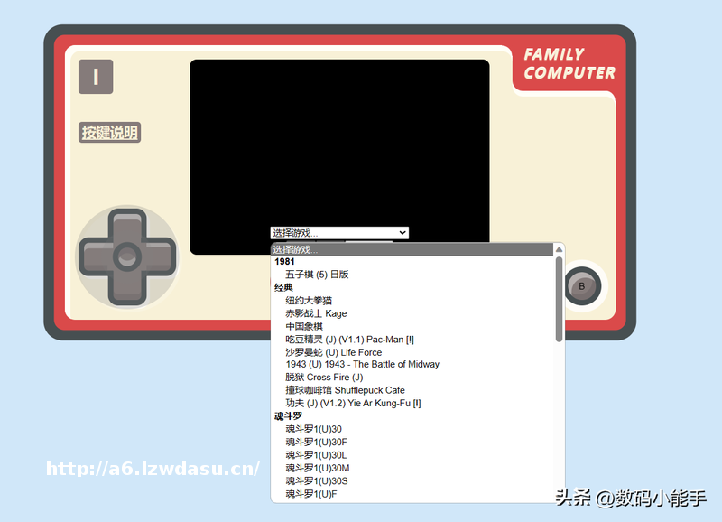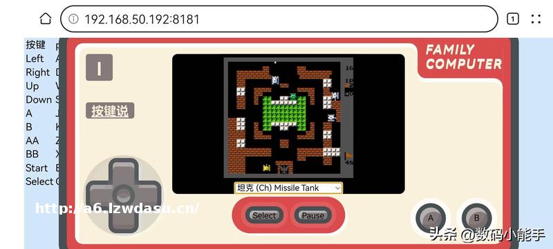 ****:// NAS的*域网IP:端口号】 就能打开页面了。可以看到为了方便我们在电脑上玩,页面左上角对应的是键盘上的按键映射。