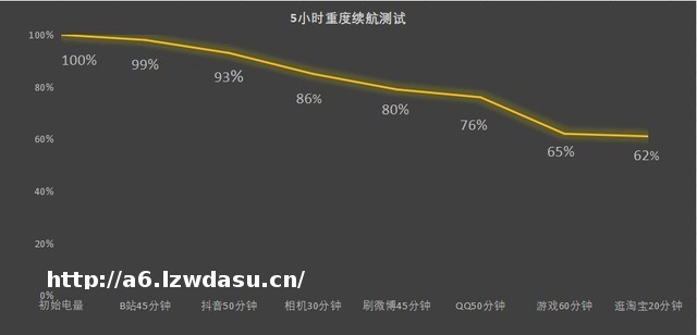 得益于5000mAh的大电池以及骁龙782G高能低耗的特*,OPPO K11在经过5小时重度续航测试后,依旧剩余62%的电量,这个续航成绩很好。