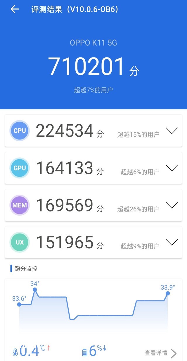 OPPO K11搭载了制程工艺为6nm的骁龙782G,8核CPU设计,CPU的Kryo 670 Prime大核频率提升到2.7GHz。骁龙 782G 比骁龙 778G+ 的 CPU 提升了 5%,GPU 提升了 10%。在安兔兔跑分V10版本已经达到了71万以上,笔者带大家看一下实际的游戏效果。