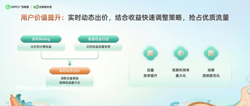 在实现内循环拓量上,在软件商店、游戏中心、小游戏大厅等场景创新推出新流量入口,助力开发者获量。同时,帮助开发者制定投放决策,从而降低买量变现门槛,获取高ARPU用户。