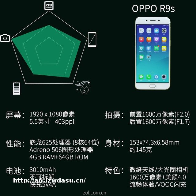上面罗列了OPPO R9s几项主要参数,都是消费者购机时最关心的项目。在我看来R9s有不少引人注目的地方,外观、拍照、系统体验、VOOC闪充。