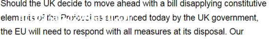 工*议员斯特芬·多赫提指出,现在不是政治作秀和玩“边缘游戏”的时候,破坏此前签订的“脱欧”协议将会使英国和欧盟关系急速恶化。现今破坏了两年前自己签订的协议,已经困难重重。