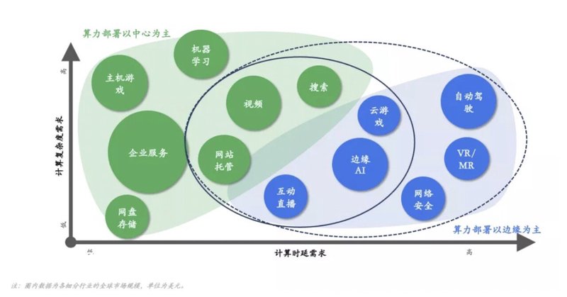 这些业务对延迟非常敏感。y轴是对计算能力的需求,这些业务对计算的需求非常大。