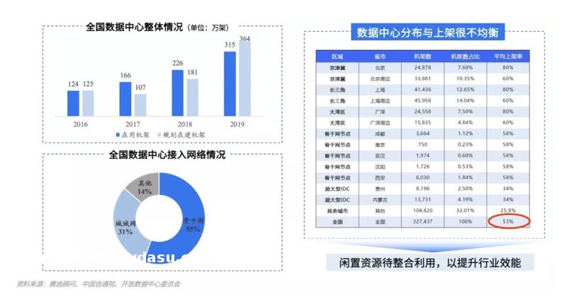 中国大部分中心云部署在一线大城市。接近60%到80%,大部分二三线城市的上架率更低,只有25%左右。
