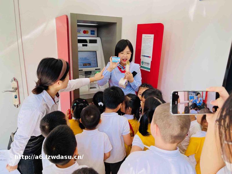 孩子们前往咨询台、叫号机及业务柜台窗口进行了参观。两位**工作人员向小朋友们展示了如何接待客户及使用机器。在工作人员的引导下,小朋友们了解了ATM机的功能,学习了存取款的基本知识。