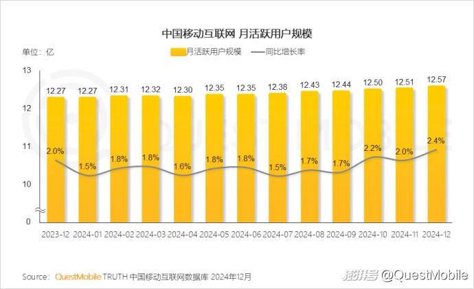 1.2 数字经济与实体经济深度融合,互联网加速渗透到实体产业,推动全网流量的增长,2025年12月活跃用户已达到12.57亿