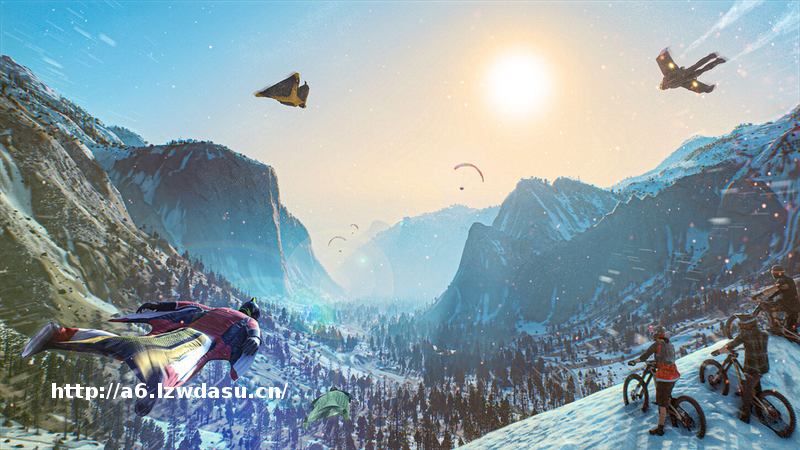 《*限国度》是育碧发布于2021年的一款*限运动作品,游戏中涵盖了自行车、滑雪、滑翔等竞速比赛。而游戏中这几项运动的共同点在于,都有大量高处坠落的惊险桥段。于是乎,许多玩家便开始在其他游戏中寻找类似的素材进行创作。