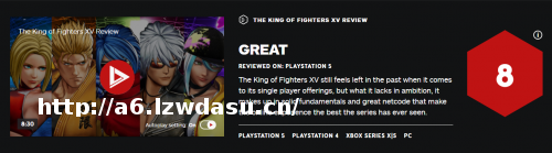 而全球**媒体IGN给本作打出8分,评语:在单人游戏方面,《拳皇15》仍然感觉像是停留在过去,它缺乏雄心壮志,但它以扎实的基础和出的编码弥补了这一点,使**体验成为该系列有史以来**的。