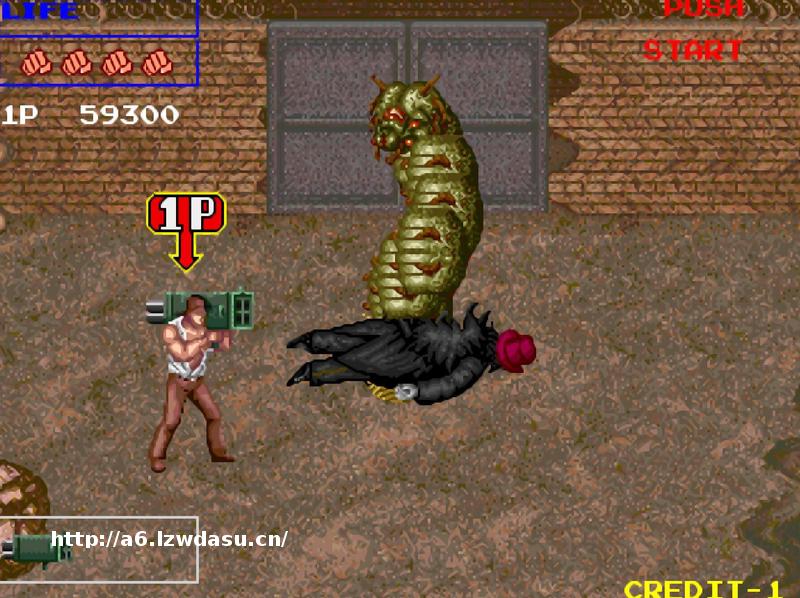 求款闯关游戏,出场在酒吧被**炸,路上的敌兵很多,可以使用武器,记得最后BOSS是大虫子,还有白花花大腿的**美女。
