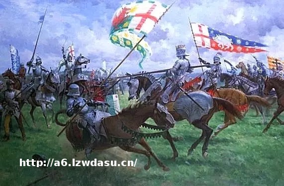 1377年爱德华三世驾崩,但王位并没有传给他在世的三个儿子,而是传给了其离世长子十岁的儿子理查二世。爱德华的三个儿子中,竞争最激烈的是第三子的后裔,兰开斯特家族,和第四子的后裔约克家族,这两个家族也对应着《权力的游戏》中的两大家族:以红色为主色调的“狮家”兰尼斯特家族,对应的是历史上以“红玫瑰”为家徽的兰开斯特家族,而以白色为主色调的“狼家”史塔克家族,则对应的是“白玫瑰”约克家族。