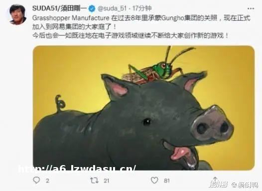 去年年底,在推特上宣布,其创办并掌舵的工作室蚱蜢制造(Grasshopper Manufacture)加入网易游戏大家庭。