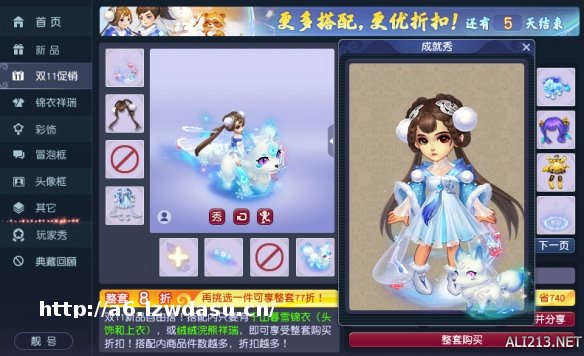 在锦衣穿搭方面,大家可选择“玄冰灵虎”、“梦萦冰泪”以及“玲珑雪狐”这些同样是蓝白**的祥瑞作为坐骑,和“千山暮雪”锦衣**适配。与此同时,双十一新品“绒绒浣熊”搭配“千山暮雪”锦衣还会让你的角色可爱翻倍,喜欢的玩家可以亲自去游戏内尝试穿搭。