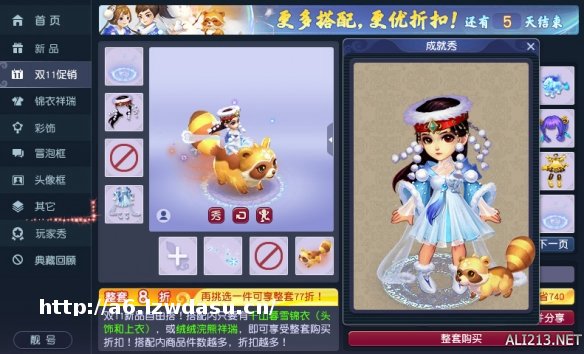 目前,大家可以打开游戏内的霓裳宝阁来购买这款精美锦衣,而且在10月13日12:00至15日12:00期间还可以参与双十一优惠活动,通过挑选其它部位的装扮来和这款锦衣进行搭配。活动期间,并且搭配包含的商品件数越多,大家所享受的折扣力度也会越大!