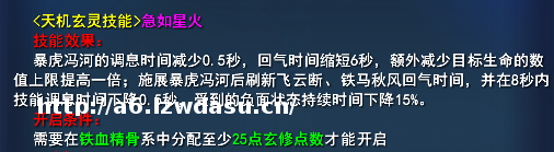 天机PVE的连招大有讲究,能否打出*限爆发的连招在于对每秒的把控,例如爆虎之后会触发飞云断,连招顺序依次是狼烟-飞云-黄云-流光-关山-虎咆-黄云-挑灯-铁马-飞云-暴虎-飞云,飞云断起手的话到挑灯结束可以无缝连接下一套连招。尽管上述的连招顺序,和正常的输出顺序无异,但从下一套连招开始,由于玄灵技能“急如星火”的加持,暴虎释放过后在8秒内所有技能调息时间会下降到0.5秒,飞云断的CD还剩下4秒。