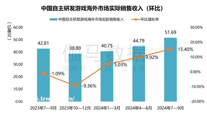 2024年4—9月,中国自主**游戏海外市场实际销售收入为51.69亿美元,达近5个季度**值,环比增长15.4%,同比增长20.75%。增长源于部分头部产品收入环比增长,新游《绝区零》表现良好以及《黑神话:悟空》的突出表现。