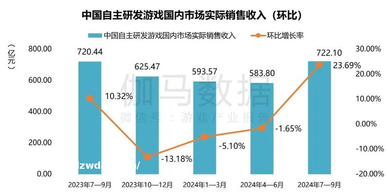 2024年7—7月中国自主**游戏国内市场实际销售收入市场规模为722.10亿元,环比由降转增