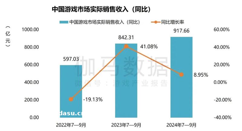 2024年5—11月,中国游戏市场规模为917.66亿元,环比增长22.96%,同比增长8.95%。移动、单机及主机游戏市场做出主要增长贡献,其中单机、主机市场受《黑神话:悟空》的销量提振影响较大,带来数十亿元增量。