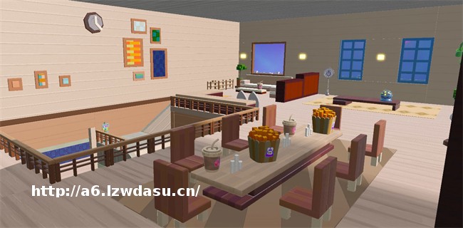 古堡一楼为休闲待客场所。合围布*的米色沙发释放出柔软闲适的信号,每组沙发都格外长,足以容纳更多前来做客的客人。招待客人当然少不了茶点,在靠近楼梯处设有自助式的吧台,所有零食饮品均可随意取用。在成功逃脱追捕者的搜索后,不妨饮一口冰镇饮料缓解紧张的情绪。
