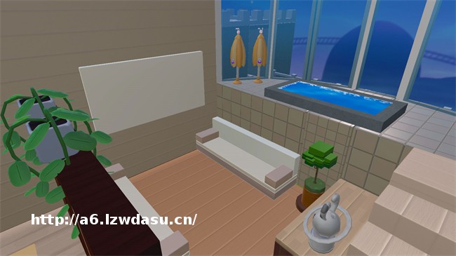 实木柜的分割式摆放,在空间内开辟了一块私人领域。对摆式的沙发布*赋予了这块私人领域交谈对话的*质,纯白色的黑板静待来者的书写。为了让交谈更为**,在此区域内特意摆放有清新绿萝、落地盆以及可爱装饰,大大改善沉闷的谈话氛围。在结束招待后,沿着楼梯拾级而上,便能在全景落地玻璃窗前享受豪华浴池带来的抚慰,一解疲惫。