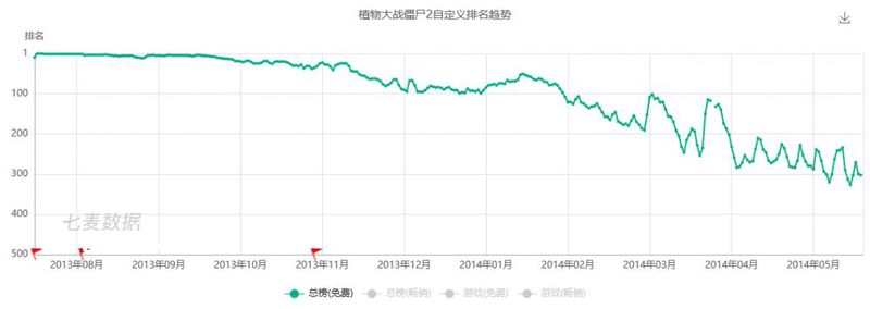 当年玩家们满怀期待的心是如何由热变凉、逐渐心死的:这款《植物大战僵尸2》在初上架App Store时迅速登上了免费榜**的位置,之后一年内持续下滑,开发商PopCap则被评价为“吃相太差”。