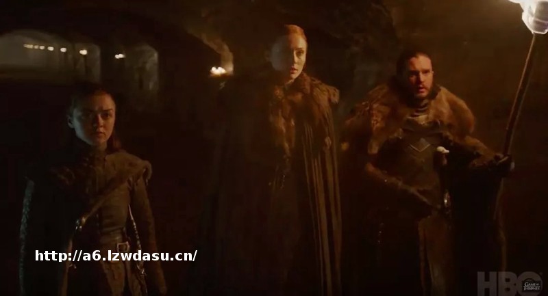 在播出的新一季预告片中,艾莉亚(麦茜·威廉姆斯饰)、珊莎·史塔克(苏菲·特纳饰)和琼恩·雪诺(基特·**顿饰)在临冬城的墓*中重聚,意寓着“狼家”三兄妹终于统一战线了。