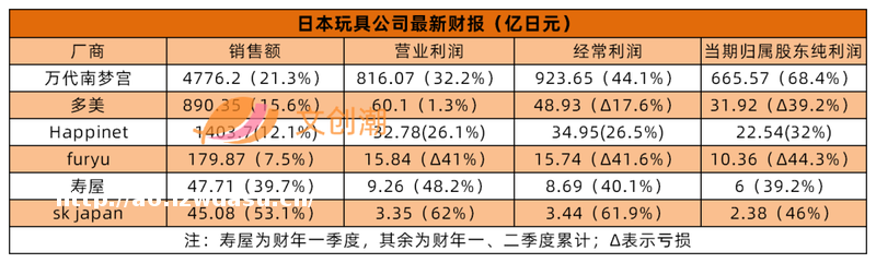 万代2023年5月期二季度(日历年第二与第三季度),玩具事业销售额2133.68亿日元,同比增长19.8%,营业利润335.62亿日元,同比增长1.4%。