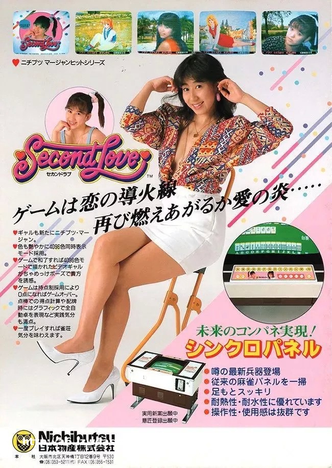 同时“**照片**”各家厂商也不愿意放手,于是真实与动画并存的**游戏街机出现了。从画面宣传用****,到将****数字化的《クリスタルギャル麻雀》系列,再到真实场景与卡通结合的《Second Love》系列。