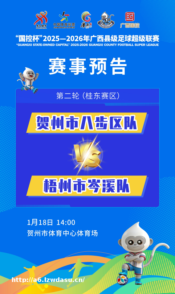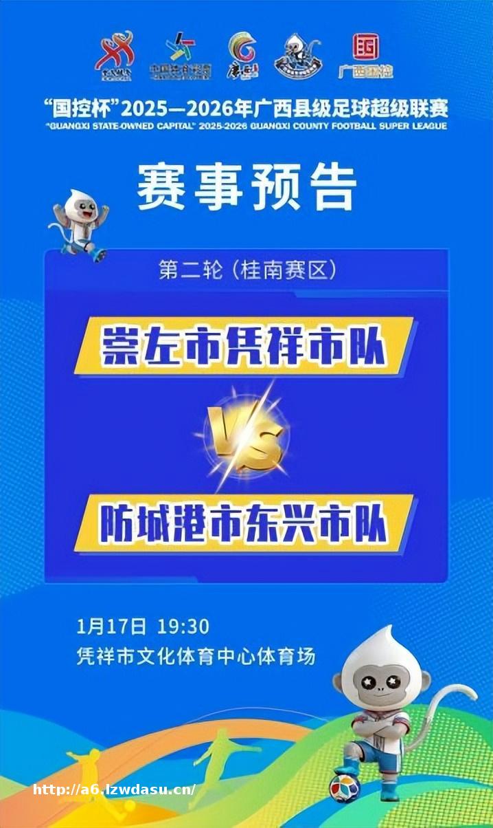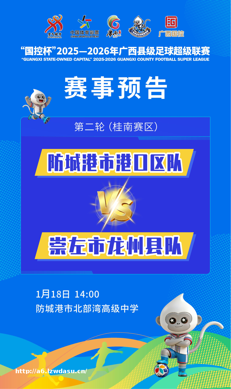 !“国控杯”2025—2026年县级足球**联赛(以下简称广西“县超”联赛)首轮激战余温未散,第二轮比拼已蓄势待发!1月17日至18日,、桂南、桂北三大赛区将同步,7组对决轮番上演,用热爱与拼搏续写足球的热血篇章。这里有最纯粹的足球,有最浓厚的乡土情怀,更有“足球+文旅”融合的**魅力,邀你赴一场家门口的足球盛宴!